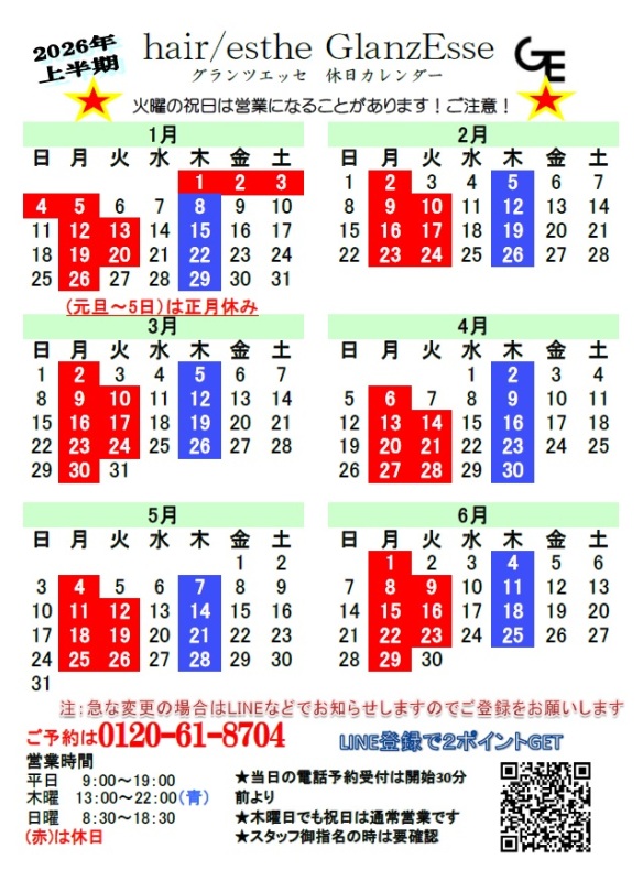 急な変更もありえますので最新情報はグランツエッセのLINEへ!