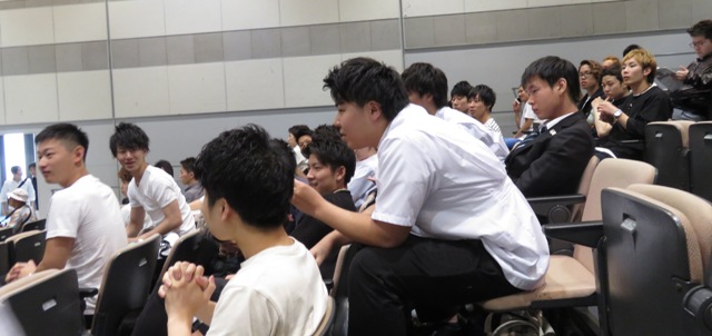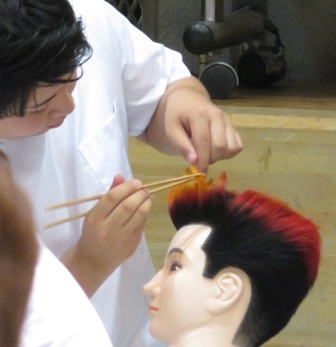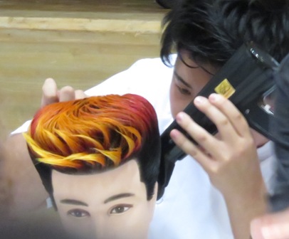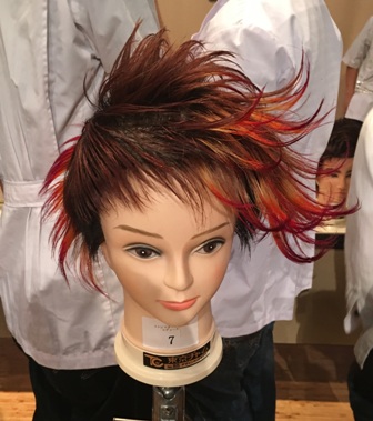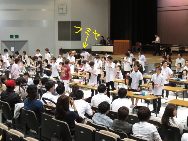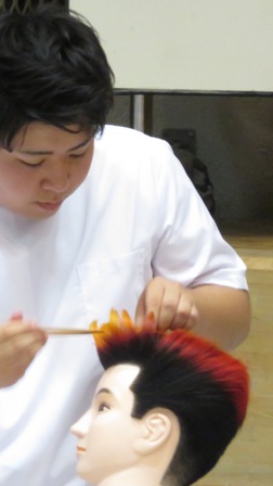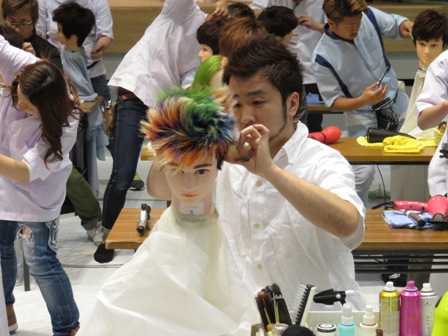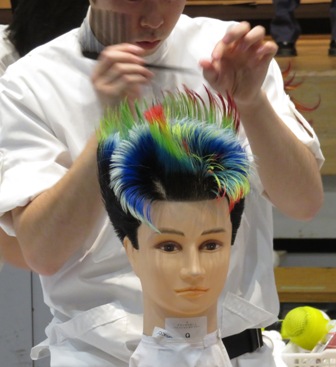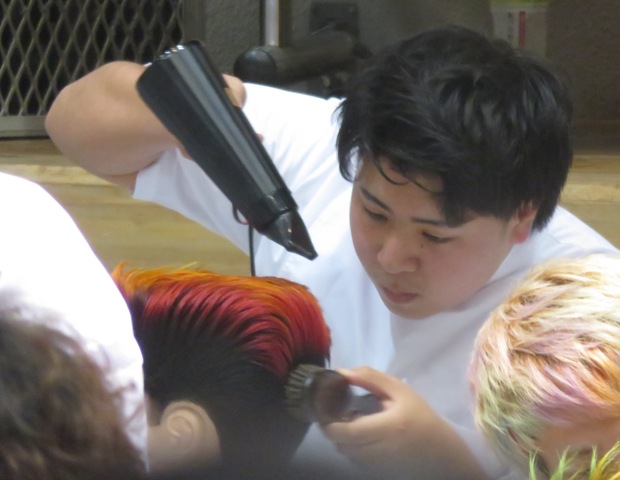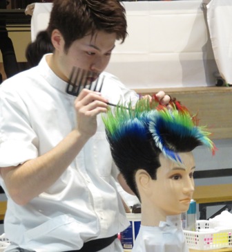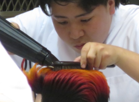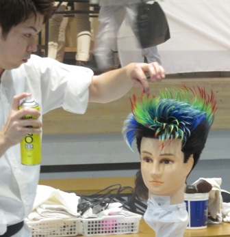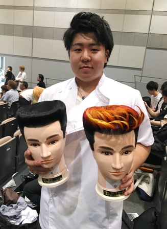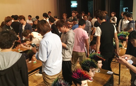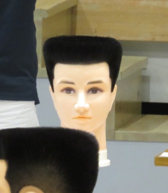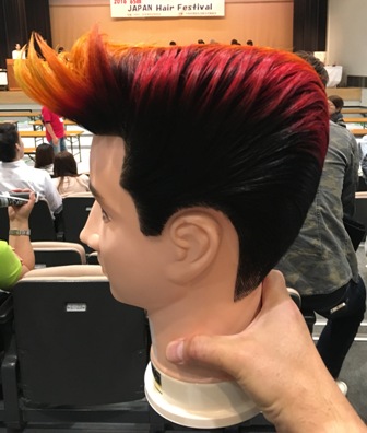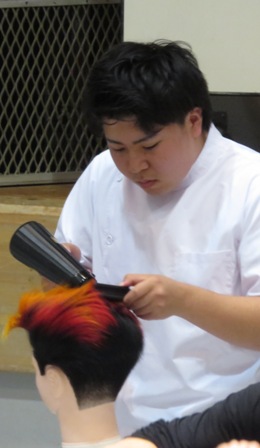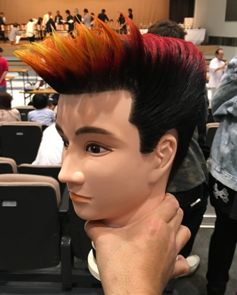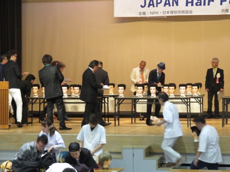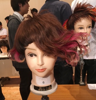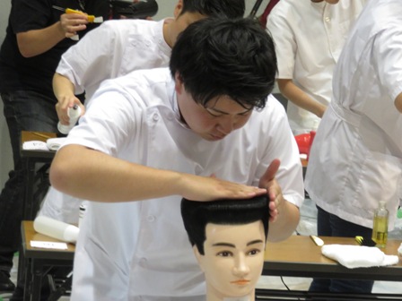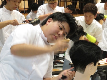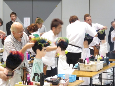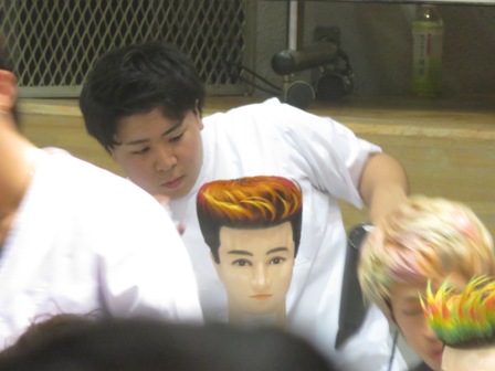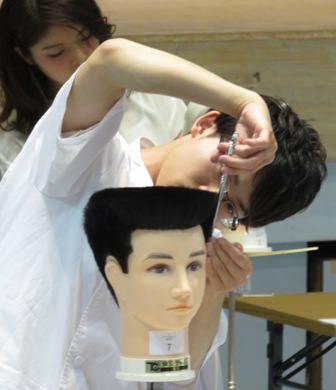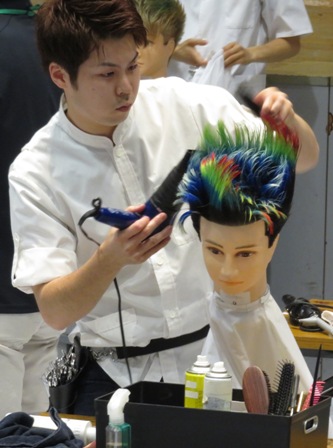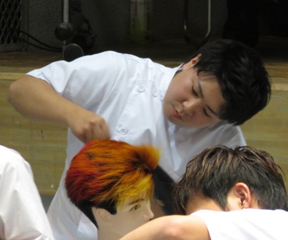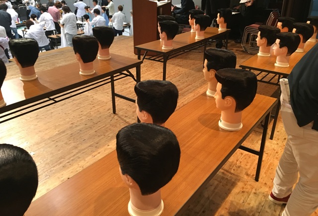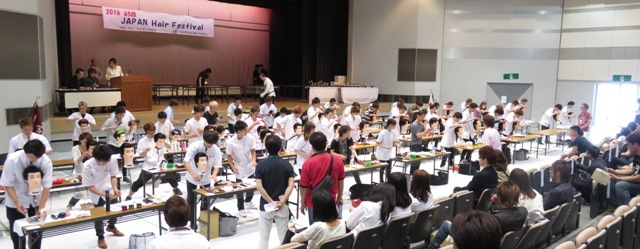 手前で競技しているのは理容学校生の国家試験科目でもあるインタースクールミディアム部門です。