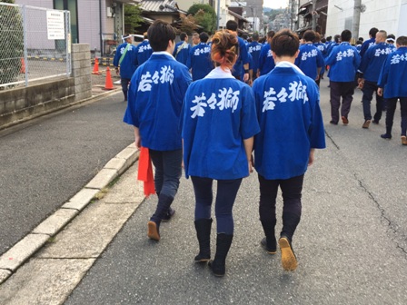 神社から獅子舞を受け取りいよいよ練り歩きスタートです!!