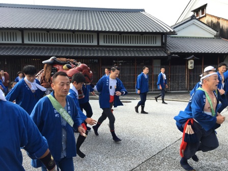 いよいよ木挽町から次の町へ獅子舞の引渡しです。