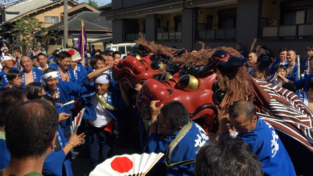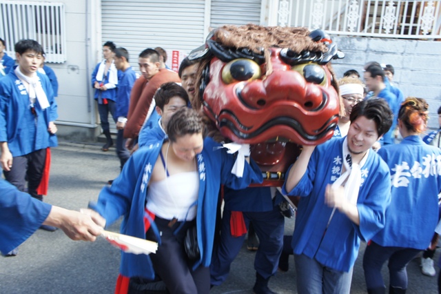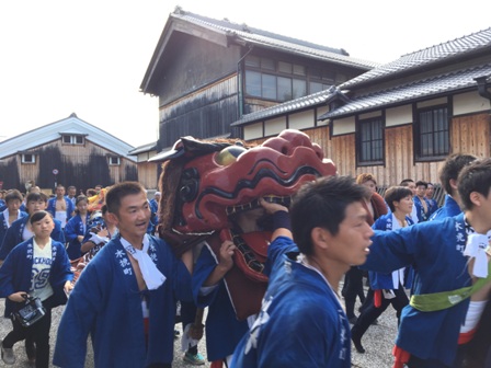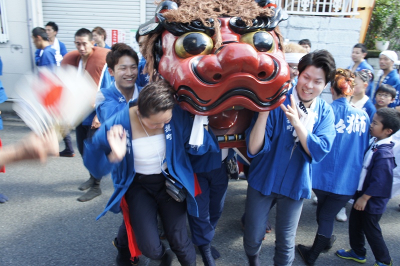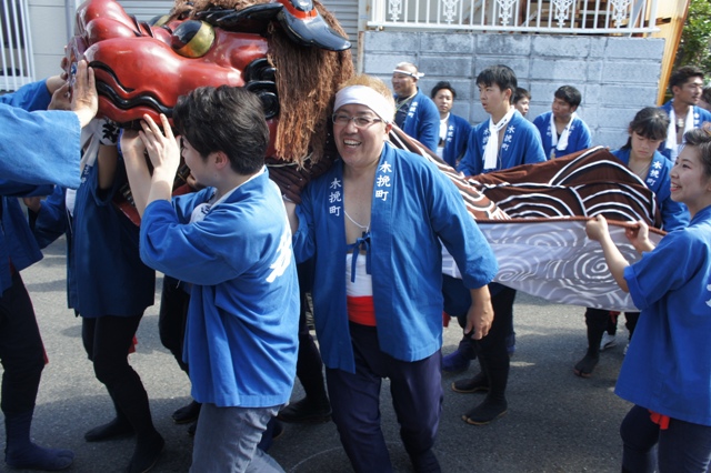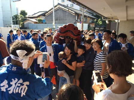 グランツエッセ前では獅子舞をみんなで担ぎました!