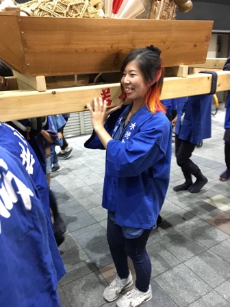 祭り好きのアンナはしっかり樽神輿を担いでいます!