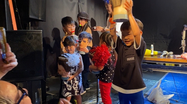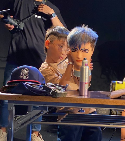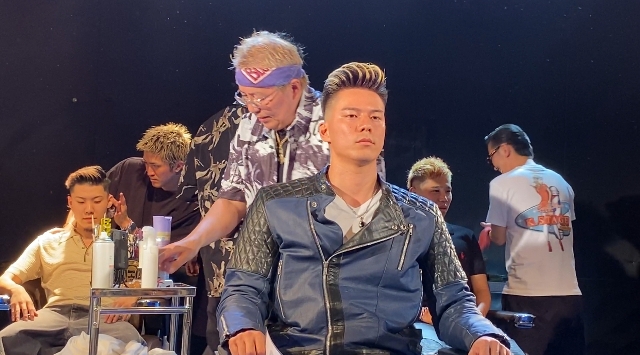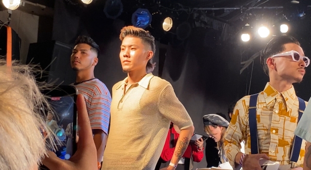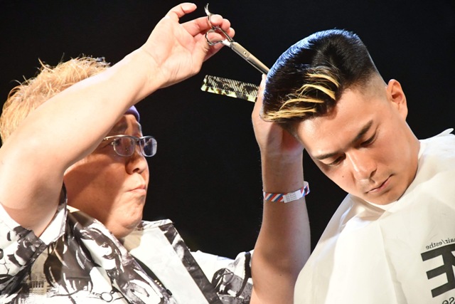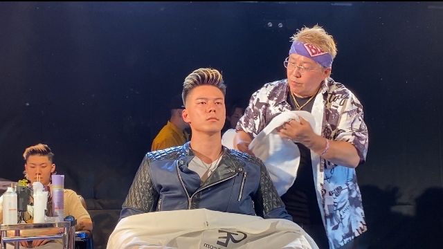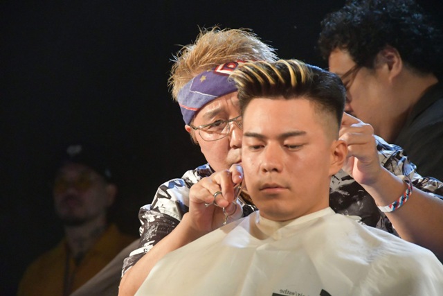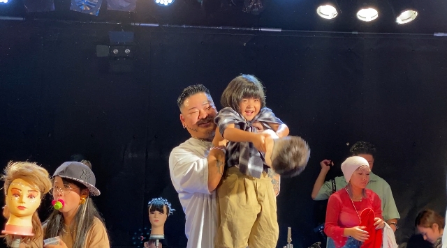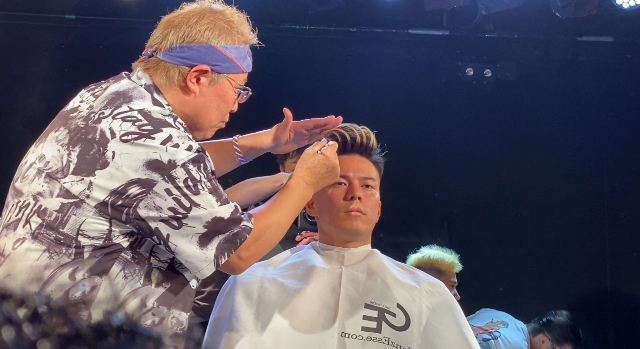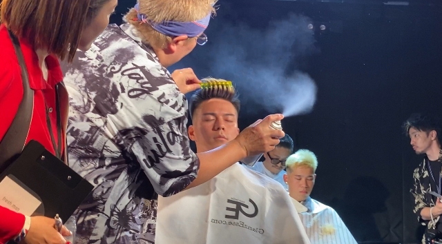 限られた時間の中でモデルにカラーをしてなんと舞台の上で洗い流すという離れ業をやってのけた!
