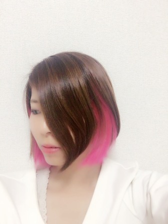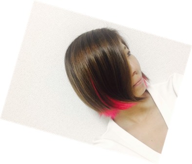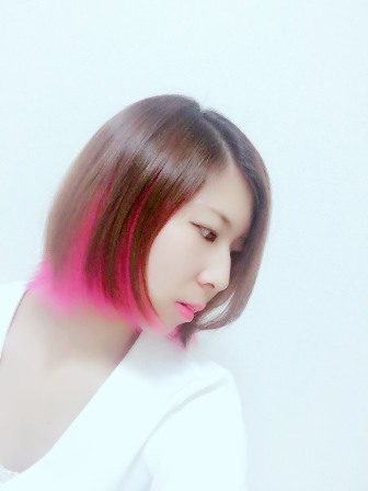 ayaka/ 前下がりラインのボブです! インナーカラーを施し二面性が特徴です! ブリーチ後ピンクを入れました! |