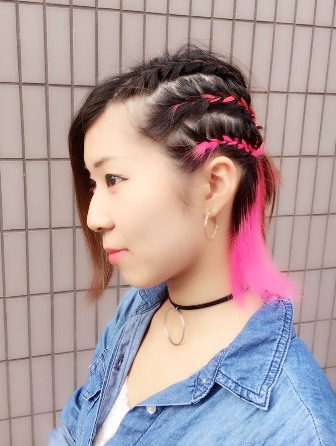 ayaka/ グランツエッセスタッフ・アヤカのアレンジヘアーです! インナーカラーを入れてある髪を編みこみました! 編みこみがより強調されてキュート&グッドインパクトですね! mika作 |