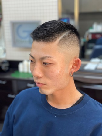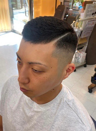 t/san ハードパート・フェードショート 張る髪にはぴったりのスタイル! メチャショートが似合っています! ハードパートが良いアクセントになっていますね! ハードパートは1週間もすれば目立たなくなるので いろんな角度ライン楽しめますね! |