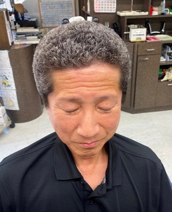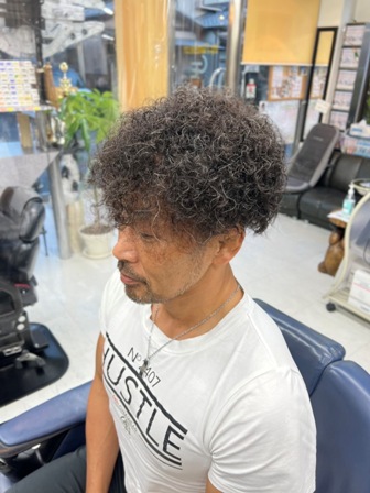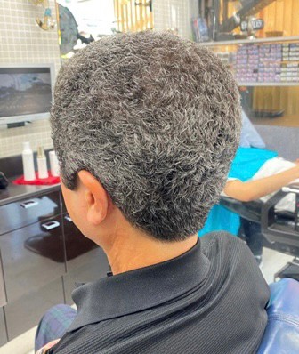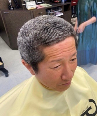 tm/san かた〜い髪なので短くしてからのハードアイロンパーマです!! いわゆるパンチパーマです!マスターシローの得意技です! このお客様も昔から御愛顧いただいています! 白髪まじりの硬い髪でもアイロンならしっかりカールを付けられます! もっと短い髪でもあてることは可能です! アイロンは1.2ミリから多種そろえておりいろんなスタイルに対応。 是非御相談ください! |