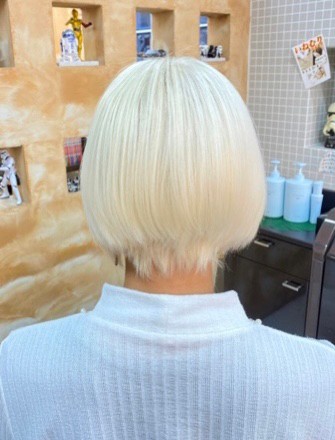 ハイブリーチでちらつく白髪も一気に気になりません! 2回のブリーチで脱色しました。 髪にはかなりの負担なので施術後のトリートメントはマメにしたいですね。 |