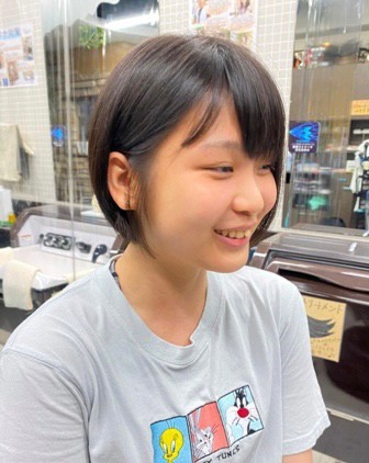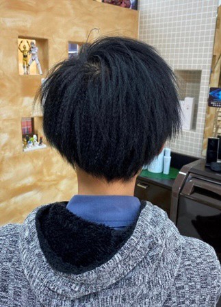 そして、次は髪が伸びたころに今度はバッサリ!ショートスタイルです! 周りは2ミリのバリカンを入れてスッキリいきました! |