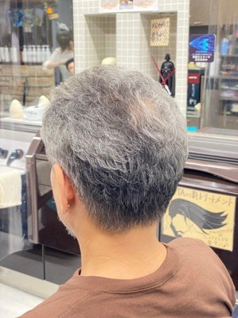 マスターシローも白髪が多いのでこれをすれば半年もちます! 3ヵ月後くらいになれば中がふわっと黒くなってきて スタイルにもより立体感が出てgoodですよ! その上白髪まじりの毛がはえてきても 明るい毛先になじんでまったく気になりません! |