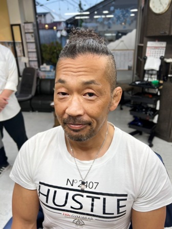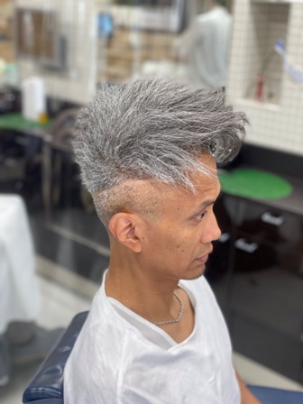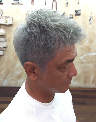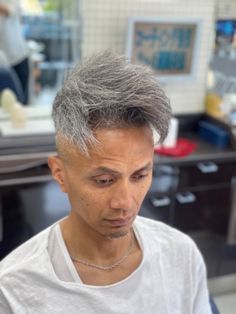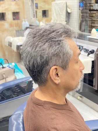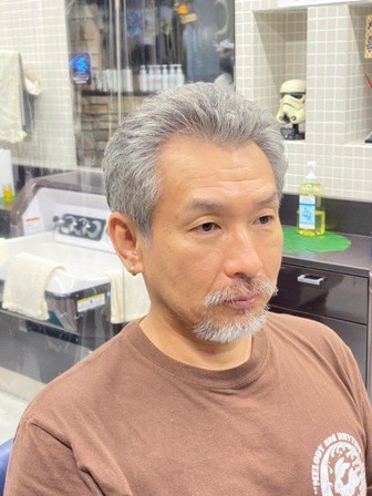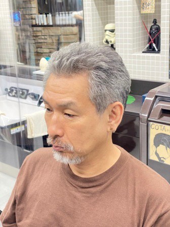 マスターシロー/ おなじみマスターシローのいつものスタイル! 白髪がすごく多いのでいつものダブルカラー! 下から白髪と黒髪が伸びてきても以外となじみます! 黒くする白髪染めより断然持ちがよく仕事に影響がなければおすすめです! さあ!白髪は黒くするだけではない!イメージチェンジお勧めです! 詳しくはスタッフまで! |