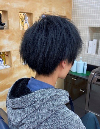 直毛で硬くパラつきやすく、サイドもすごく張る髪だったので アイロンパーマを提案! ツーブロックしているのでサイドはGEフィッティングアイパーを施し サイドのポイントアイロンは2,000円程度です 欲しい部分だけあてられます でも、いかにもあてた感を出さず自然にしお手入れを楽にします! 御相談ください |