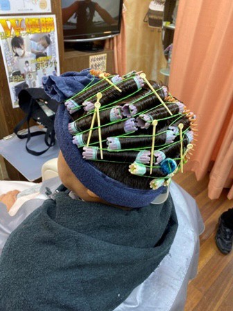 ![]() nonon/chan とってもサラサラのきれいな髪のnononちゃん ツヤが良くてピカピカの髪はパーマがあたりにくいので強めのパーマ液を使って太めのロットでしっかり巻かせていただきました! |