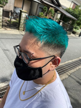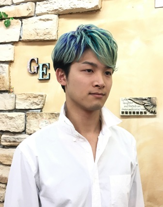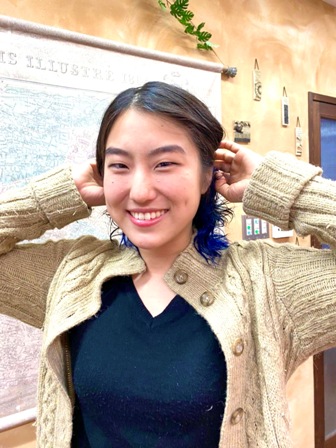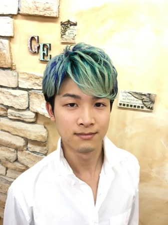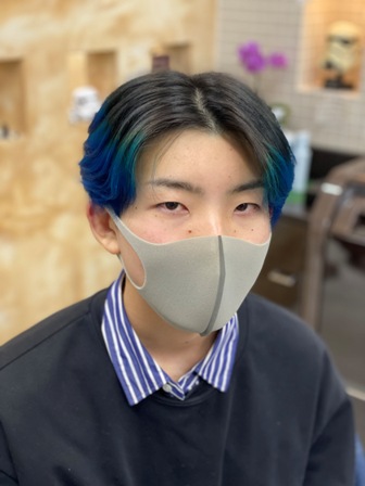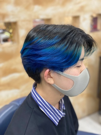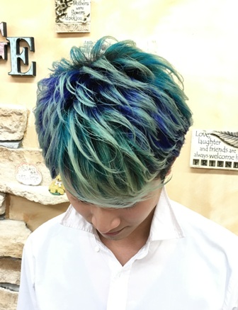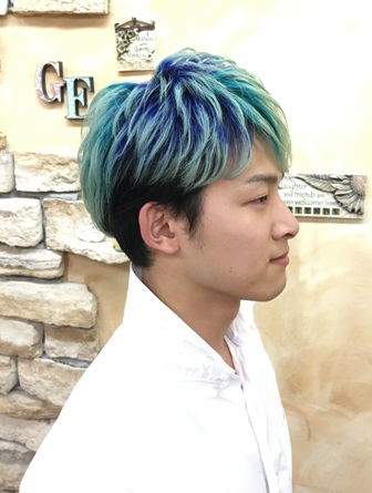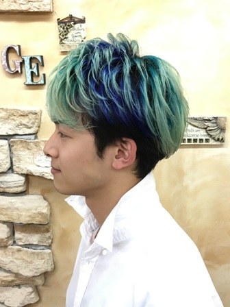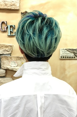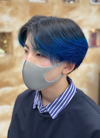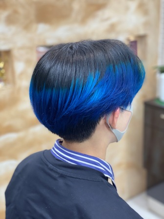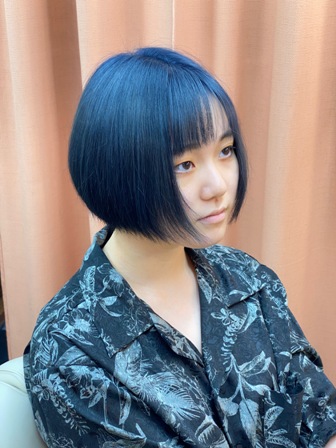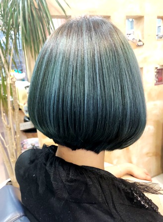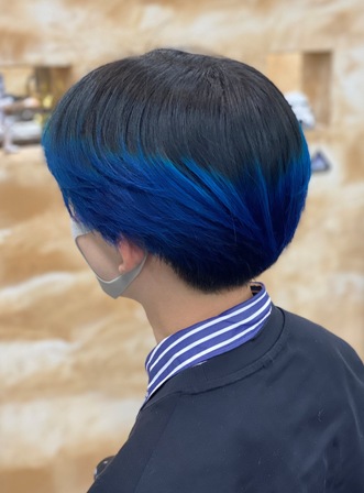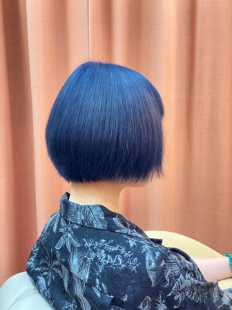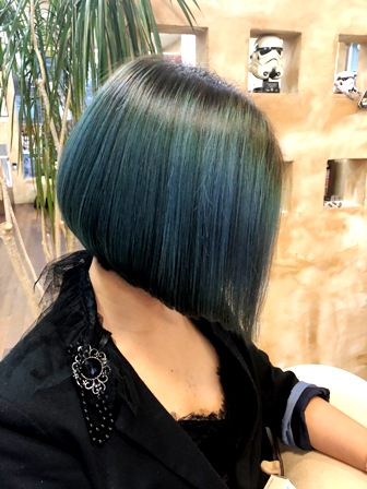 ay/san 前下がりボブからのブリーチからの ブルーメッシュです! 施術して数週間たっていますのでだいぶ色は抜けていますがまたこれもいい感じですね!! グランツエッセではいろんな特殊カラーもやっております! 是非スタッフにお尋ねください! |