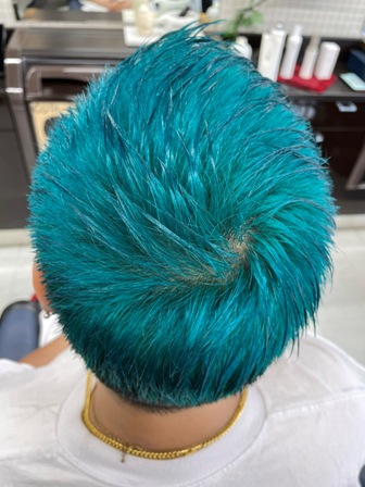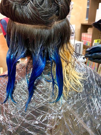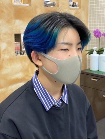 tjm/kun ブリーチを2回してブルー系入れてビビットカラーにしました! とってもきれいに入りましたよ でもブルー系は色落ちが早いのでまた抜けたら違う色に挑戦してね |