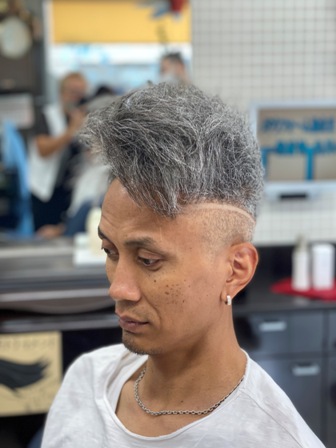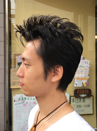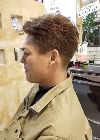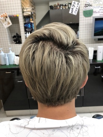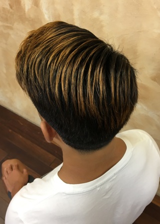 ![]() ★スタイリングをした状態です。 髪が柔らかいのでハードムースをつけパリッと仕上げています。 これでまた3ヶ月ほどもちます。 2回ほどカットしても明るい部分が残るので少しずつ雰囲気が変わっていくのも楽しめます。 ぜひチャレンジしてみてください!! |