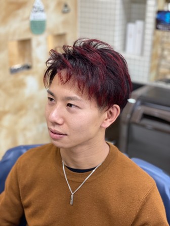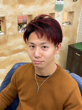 ymd/kun グランツエッセのタクヤです! 今回はお客様をワインレッドにさせてもらいました! ブリーチ一回で、マニキュアを入れました! ポイントは、根元はブリーチしてないので、立体的に見えます! 是非お試しください! |