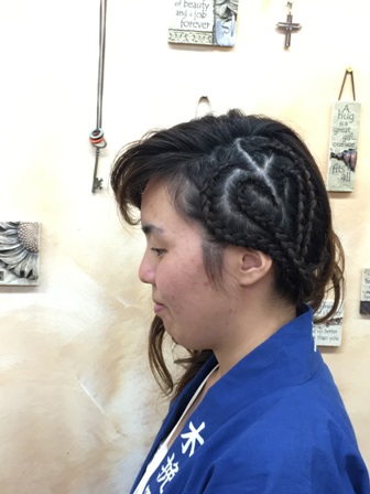 an/ お祭りコーンロウスタイル ハート型に表現!!注目度ナンバーワン!! コーンロウは長さや形、部分でも料金が変わります。 ご希望の方は一度お問い合わせください! お問い合わせはフリーダイヤル 0120-61-8704 |