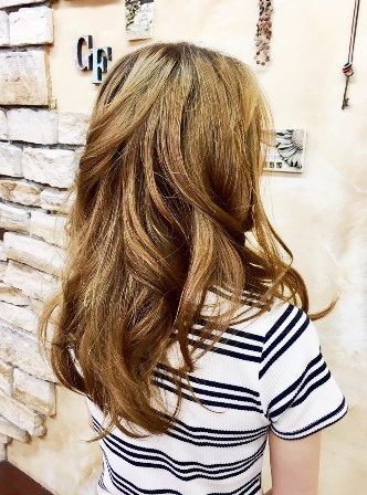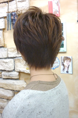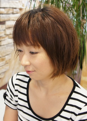 | k/san 黒髪がとってもきれいで健康毛。 でも今回はイメチェンに挑戦!!只今実施中のおまかせカラーでにナチュラル系の色入れさせていただきました。 使用カラーはホーユープロマスターのN−8/7 カラーの為にとっても印象が柔らかくなり、髪の嫌なクセも逆にいい動きになりました。 |