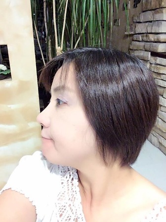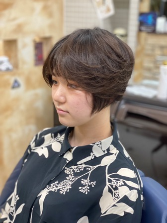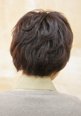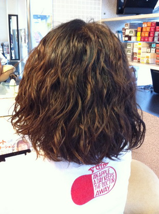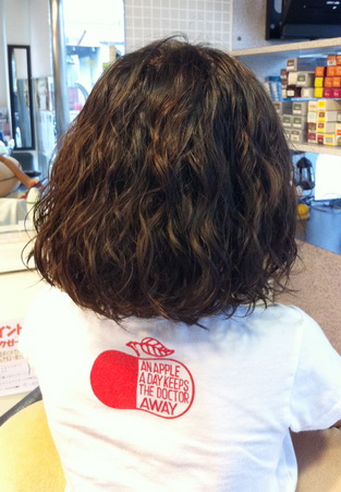 短くてロットが巻けない・・・なんて超短い髪でもアイロンならカールできます! 写真のカールは4ミリのアイロンであてています。 仕上がりまでの時間は約2時間、施術料金は9000円前後です。 |