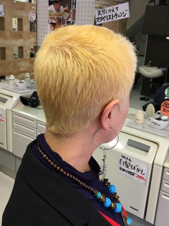 ![]() ★一回目のブリーチ後の状態 まだ黄ばみがおおくこの状態では後のカラーが入りにくいです。 ポイントはいかにキレイにブリーチをするかです。 |