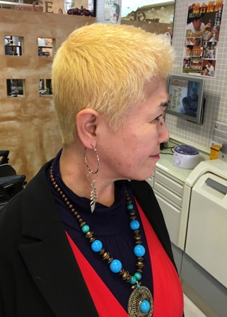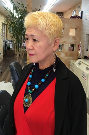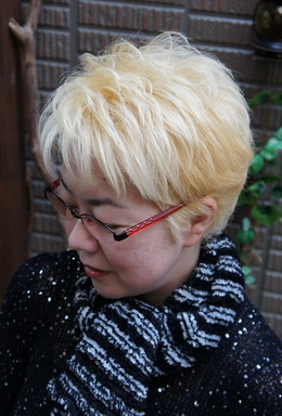 kawamotosan/ ハイブリーチショートシャギースタイル 白髪が目立ってきたので一気にハイブリーチ!! とってもドレッシーで雰囲気のある方だけにぴったりに合っています!! カットラインは髪の生え方を考慮したショートシャギー、手入れも簡単!仕上げにはつやのあるものがお勧めですね! キマってます!! |