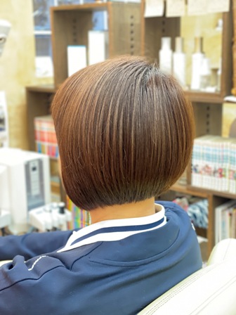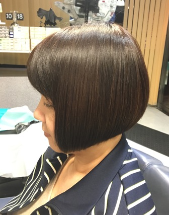 まっすぐ乾かせばツルッとした重めのボブになりますが 今回の仕上げは・・ふわくしゅボブという事で 乾かしながら髪をねじりクセをつけ ナカノWAXのガールズメイクで よりくしゅくしゅ感を出しました! 最後にVO5ハードスプレーでキープ! |