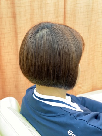y/san ツヨシがカットしました。 重めのボブを軽めのレイアーショートにしてふんわり感UP 後頭部にボリュームを出しやすくするために髪の中間にマテリアルカットを施してあります。 襟にそうようにシャギー感を出しました。 仕上げはWAXで毛束感UP! お手入れ簡単ヘアーです! |