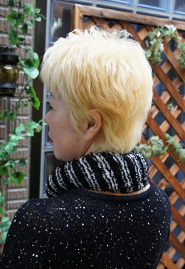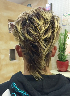 ![]() シルエットは基本、モヒカンAラインだがお顔のラインに合わせボリュームを出すところ、しめるところをつくってメリハリをね! |