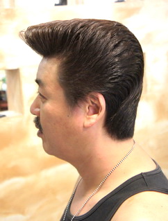 nakata/san ライブハウスでステージがあるとき、気合を入れるためにいつもリーゼントで決めます!! バンドがロカビリー系なのでとっても渋いです!! プロのバンドマンは頭もプロ仕様です! |