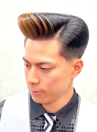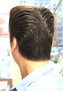 コンテストにあるクラシカルバックスタイルという基本スタイルをしっかり身につけていないとこのようなリーゼントもクオリティーが下がってしまいます! | ![]() |