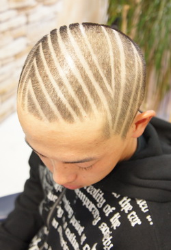 施術料はあまり複雑なものでないかぎりは通常の大人整髪料金4200円に含ませていただきますが写真のように全頭に及ぶ場合はデザイン、複雑さに応じて多少UPいたします。 マスターシローにおまかせの場合、ヒマなときならUP料金はいただきません。 (するのとっても楽しいので(^^;) 要予約 |