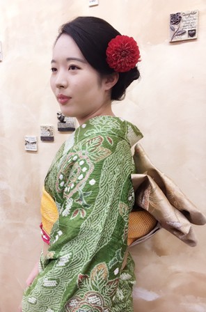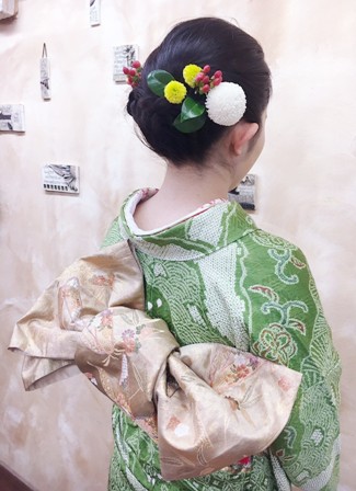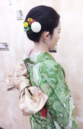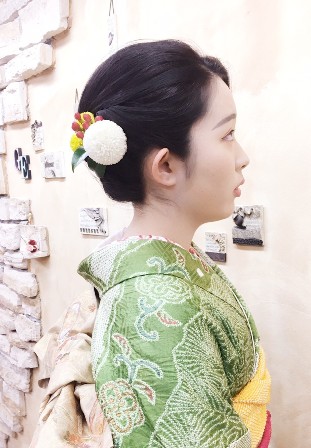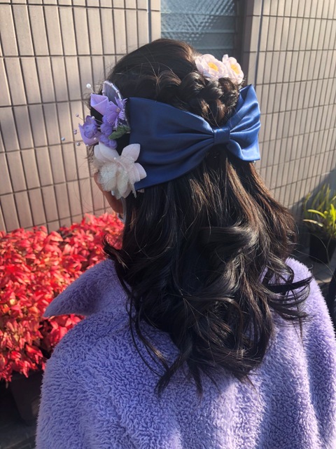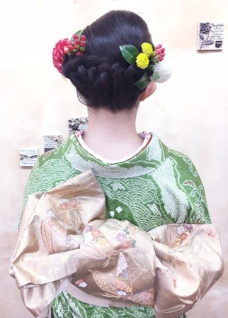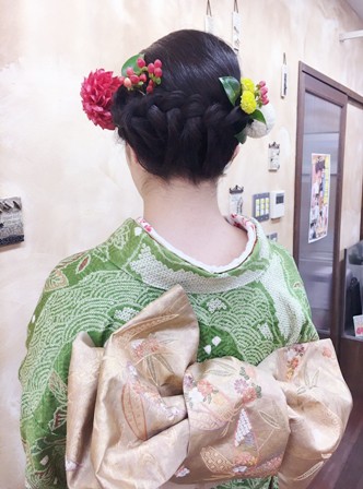 s/san 生花を使って派手になりすぎず盛りすぎず、でも華やかであり落ち着いた大人の雰囲気を出した成人式用アップスタイルです。 一緒に着付けもさせてもらいました! 要予約です。 担当 ヨーコ |