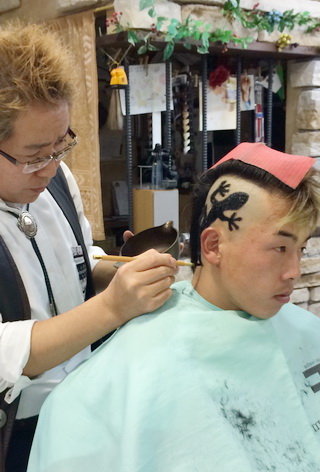 ![]() sugitani/kun 全体を3ミリで刈ってフリーハンドでかみそりで剃りこんでいきます。 |
