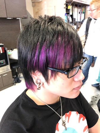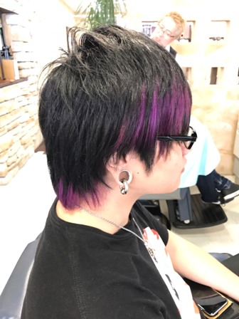 ueharakun アシンメトリーにカラーリング!とってもきれい! カット後2回のブリーチをしてパープルを入れました! ポイントにビビットなカラー!おすすめですよ! ヨシタカ担当 |