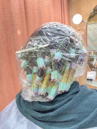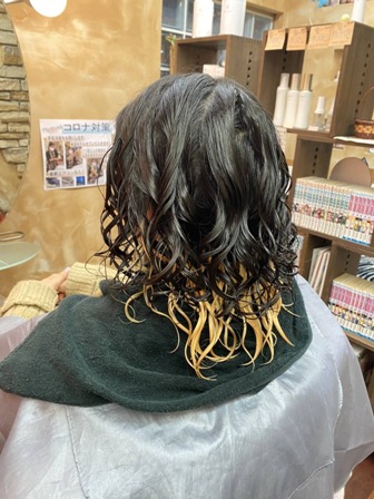 5パーマをします ブリーチ毛は痛みやすいのでやさしい薬剤を使います |