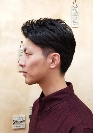 | ogasawarakun/ サイドにツーブロックを入れてすそにスッキリ感を出しました。 すこしクセのある髪質を生かしふんわり感が良く出るように効果的にセニングを入れたからとっても軽い雰囲気ですね! とってもカッコよく思わず写真撮影頼みました〜〜 担当 マスターシロー |