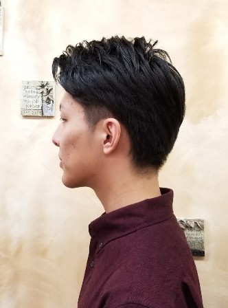 tn/kun サイドにツーブロックをいれスッキリ感と軽さを出したツーブロックマッシュスタイルです! 髪に良いクセがあるのでそのまま根元を起こすフィンガーブローをするだけで毛先に良い動きが出ます! あとはナカノの7SのWAXをつけるだけで束感も良い感じに出て簡単スタイルです! ポイントは根元の起こしです! |