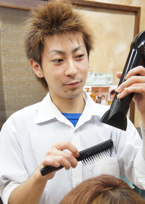 ☆朝のスタイリングのコツ 1、とりあえずしっかりお湯でクセを取る 2、すぐにタオルドライで出来るだけ水分を取る 3、8分乾燥になったら指の間で髪を挟み放射状に持ち上げ根元にドライヤーの熱をあてる。 4、指で挟み上げ根元に熱をあてる。この時できるだけ一箇所に止まらず何度も指を入れ直し、いろんな方向から髪を起こす。 5、シルエットの基本は女性は菱形が基本。トップとサイドは膨らませハチ(頭の角)の部分は抑えめに・・・ 6、髪にクセのある場合はフィンガーブローがおすすめ |
