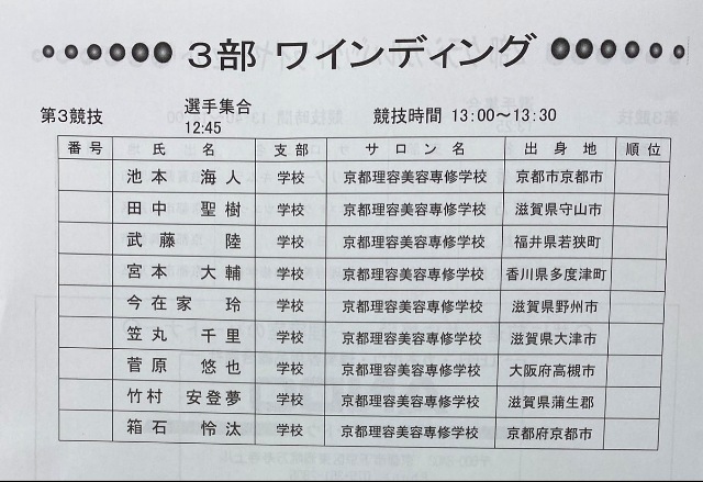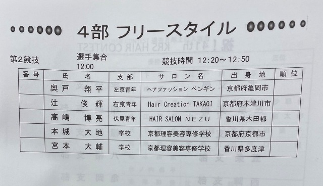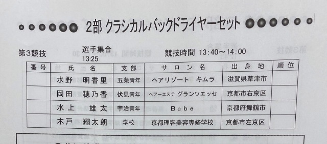 第55回京都府理容競技大会速報!! 波多野、後藤 W入賞!2002年