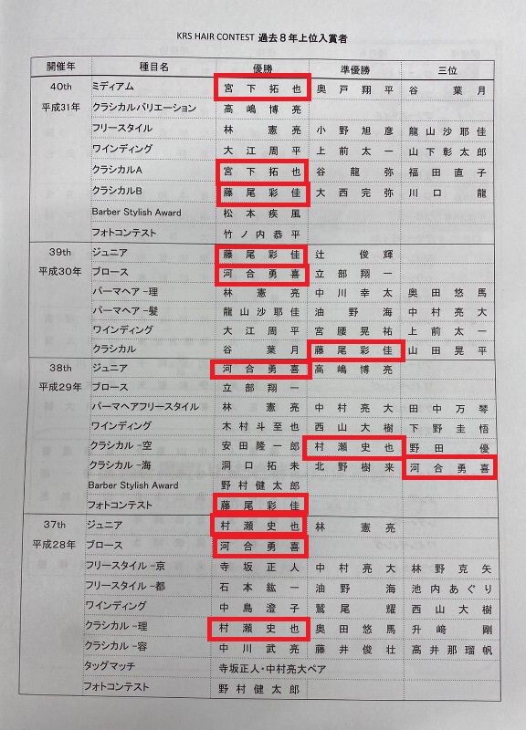 前回のKRSヘアーコンテストではジュニアとクラシカルの2冠を取った実力