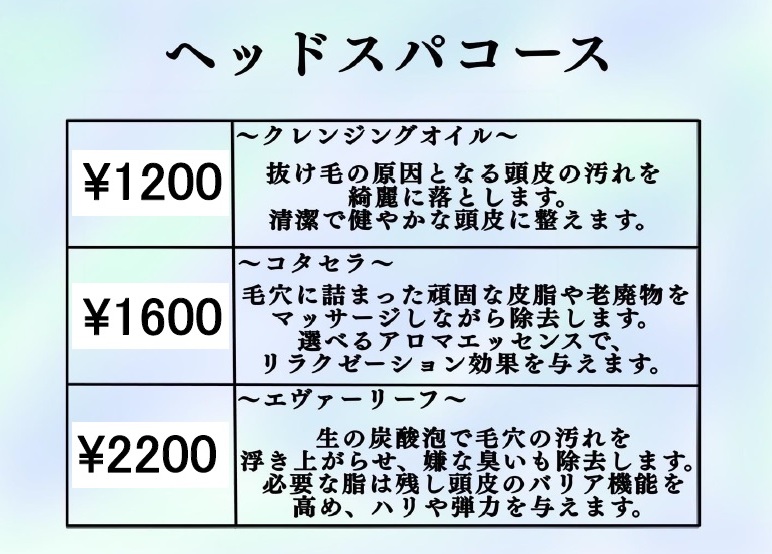なお通常のカット基本料金は従来通りにさせていただきます。