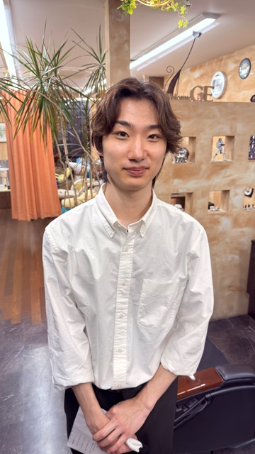 2020年に理容学校入学 2022年免許取得しグランツエッセへ正式入店 学校時代から勤務していたのが功を奏しすでに指名もあるスタイリストに! よろしくお願いします!