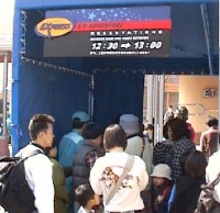 USJには予約が取れる仕組みがありまして待たずに入れます。でも、予約を取ったアトラクションが終ってからでないと次の予約が取れないのがポイントです。 | ![]() ETの予約受付ブース。 うまく使うと時間の節約に! |