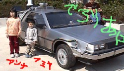 会場前にはあのデロリアンが!感激〜 ドクのそっくりさんもいてあとで記念写真も撮ったぞ! |